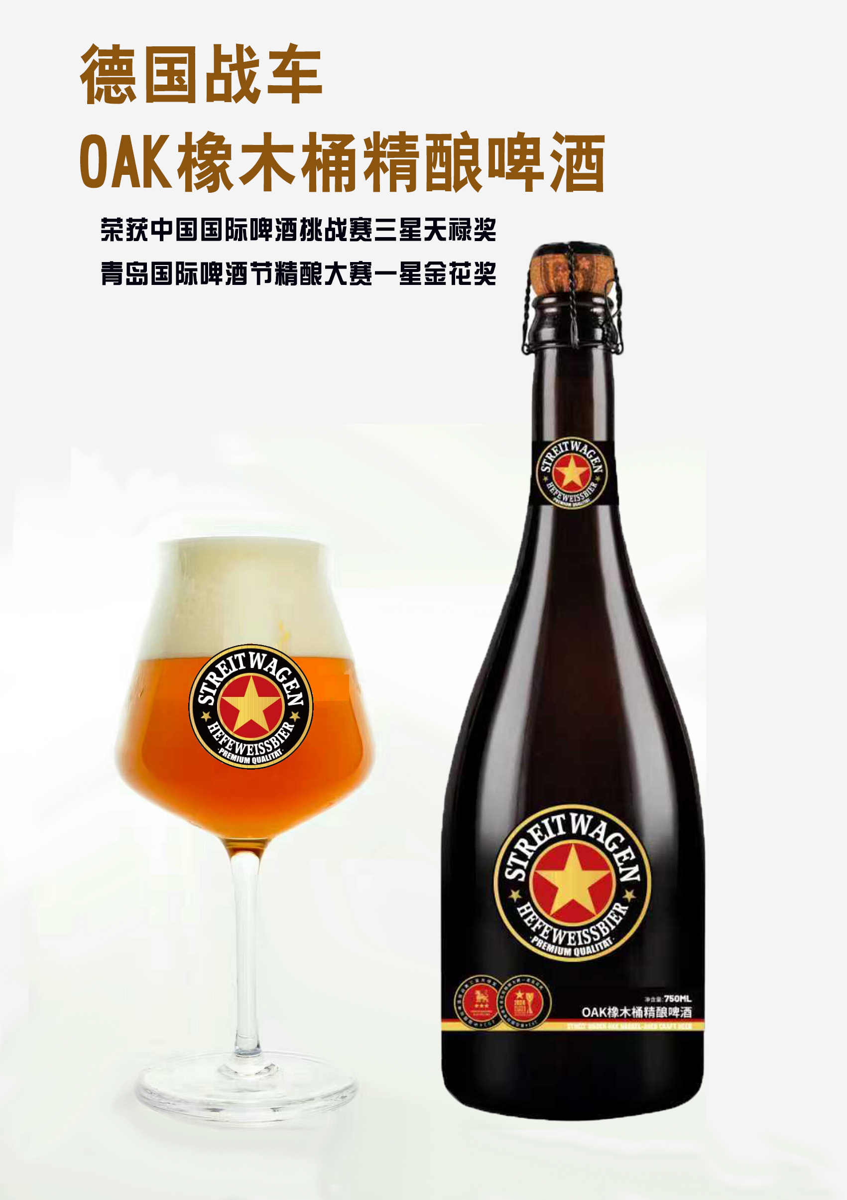 德国战车橡木桶进行陈酿的精酿啤酒,它在酿造过程中经过了橡木桶的处理,从而具有独特的风味和品质。